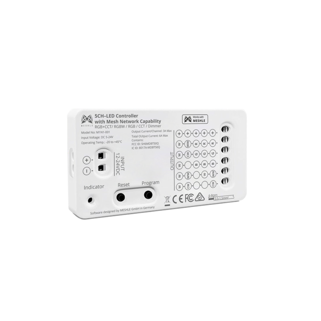 The output channels of MESHLE flex PRO can be flexibly reprogrammed depending on the type of LED strips. Therefore, RGB+CCT, RGBW, RGB, CCT, single color LED strips can be connected to the controller.